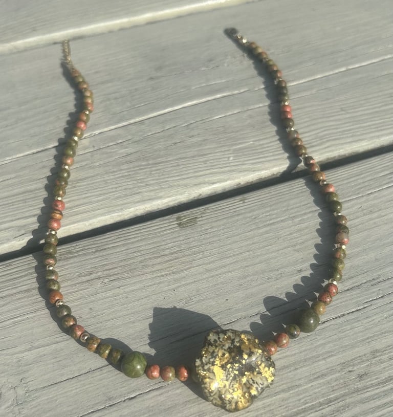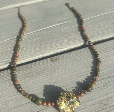 Discover the allure of our semi-gemstone necklaces, each featuring unique pendants crafted from beautifully curated sea shell pieces or real leaves. These exquisite accessories are not just adornments; they embody the beauty of nature with every detail. Some of our designs are accented with shimmering 24k gold leaf, adding a touch of luxury and elegance that enhances their charm. Each necklace is intricately made with high-quality gold-filled details, ensuring durability and a sophisticated finish. Whether worn alone or layered with other pieces, these necklaces are perfect for expressing your individual style and appreciation for natural artistry. Embrace the unique blend of elegance and nature with these stunning creations.